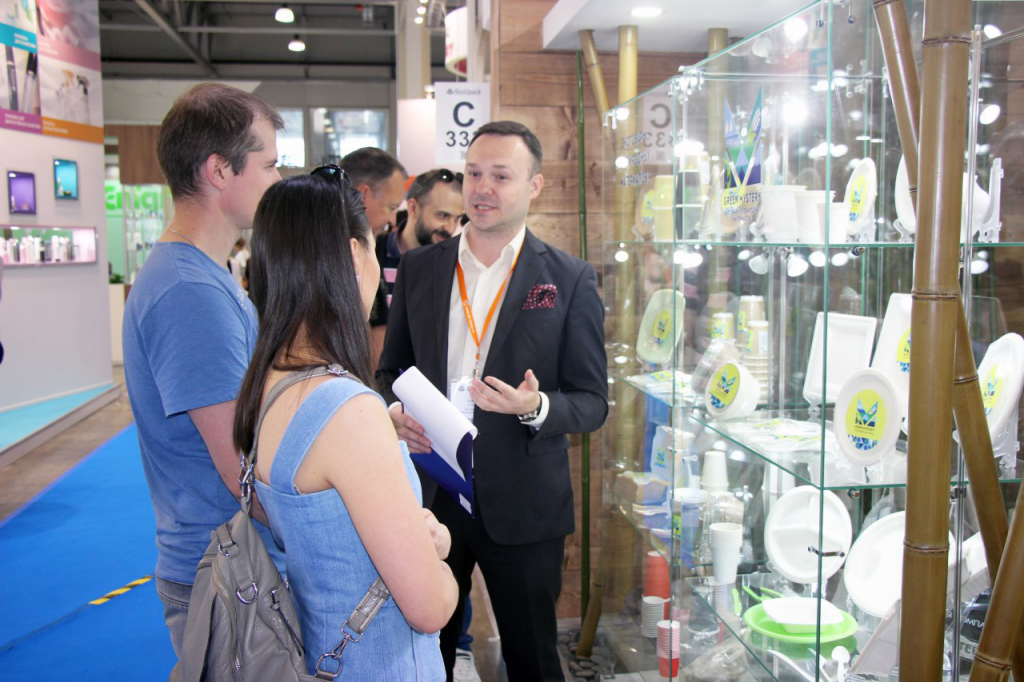 С 18 по 21 июня в Московском выставочном центре «Крокус Экспо» прошла 24-ая международная выставка «РосУпак-2019». Данное мероприятие считается самым масштабным событием упаковочной индустрии в России и странах Восточной Европы. В выставке приняло участие 652 компании со всего мира, среди которых была компания «МИСТЕРИЯ», представившая свою новую торговую марку «GREEN MYSTERY». Стенд был посвящен ЭКО тематике и демонстрировал широкий ассортимент экологически-чистых одноразовых товаров для опта и розницы из биоразлагаемых материалов.